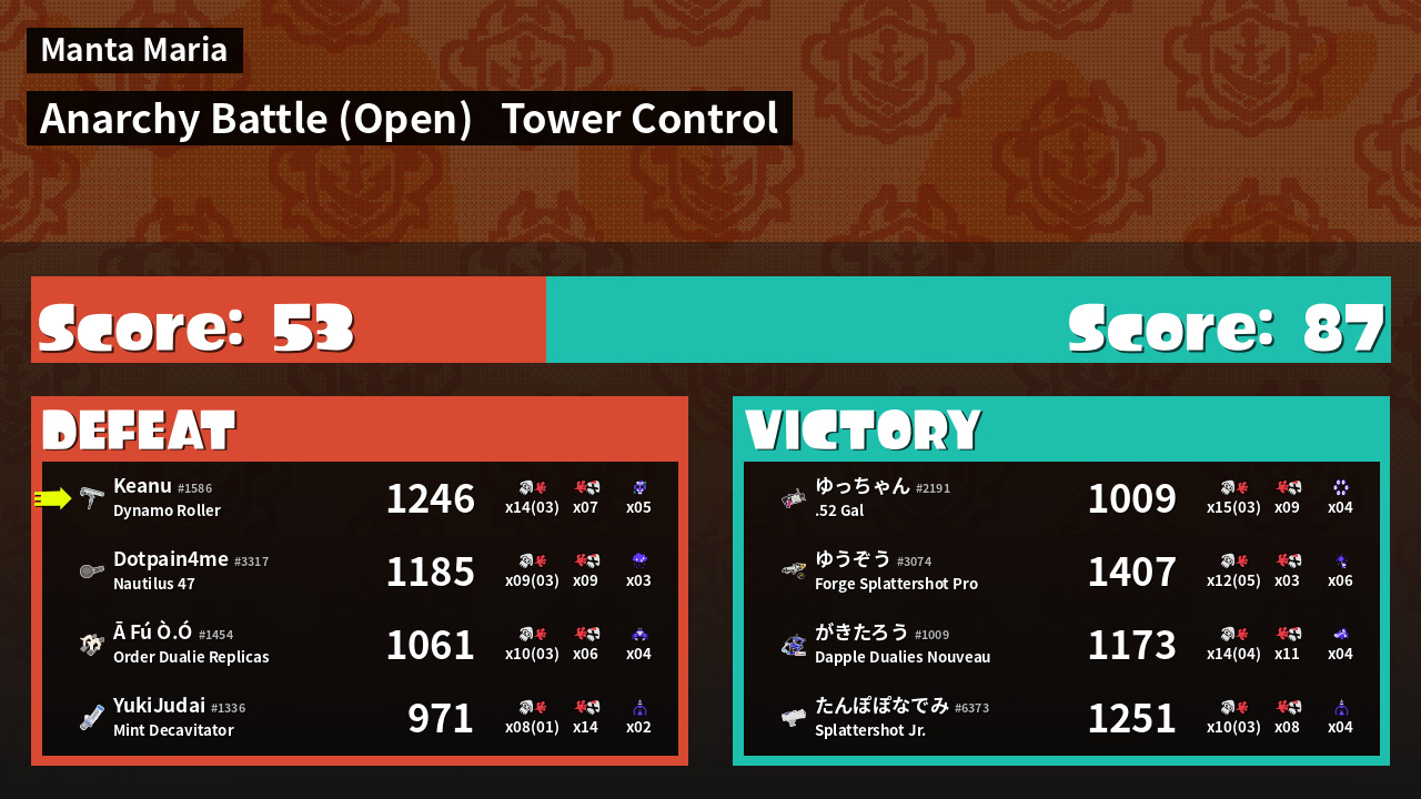 | Mode | Tower Control - Anarchy Battle (Open) | ||