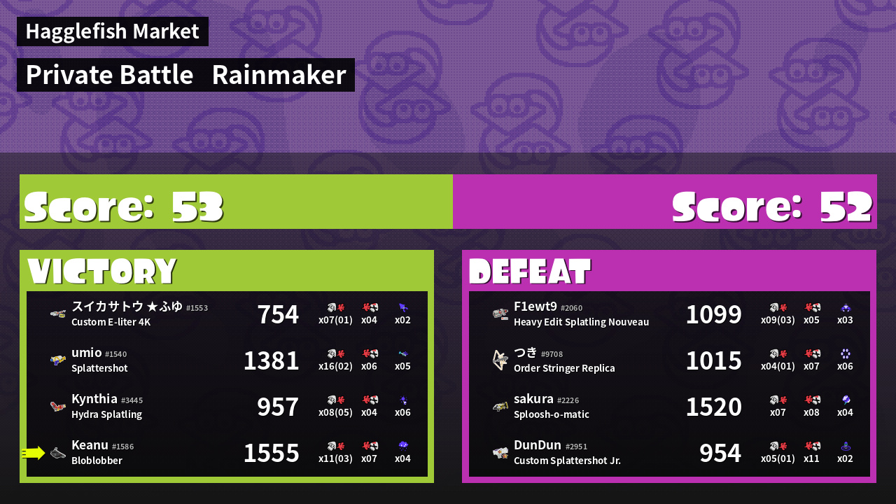 | Medals | #1 Turf Inker #1 Rainmaker Carrier #1 Ink Storm User | ||