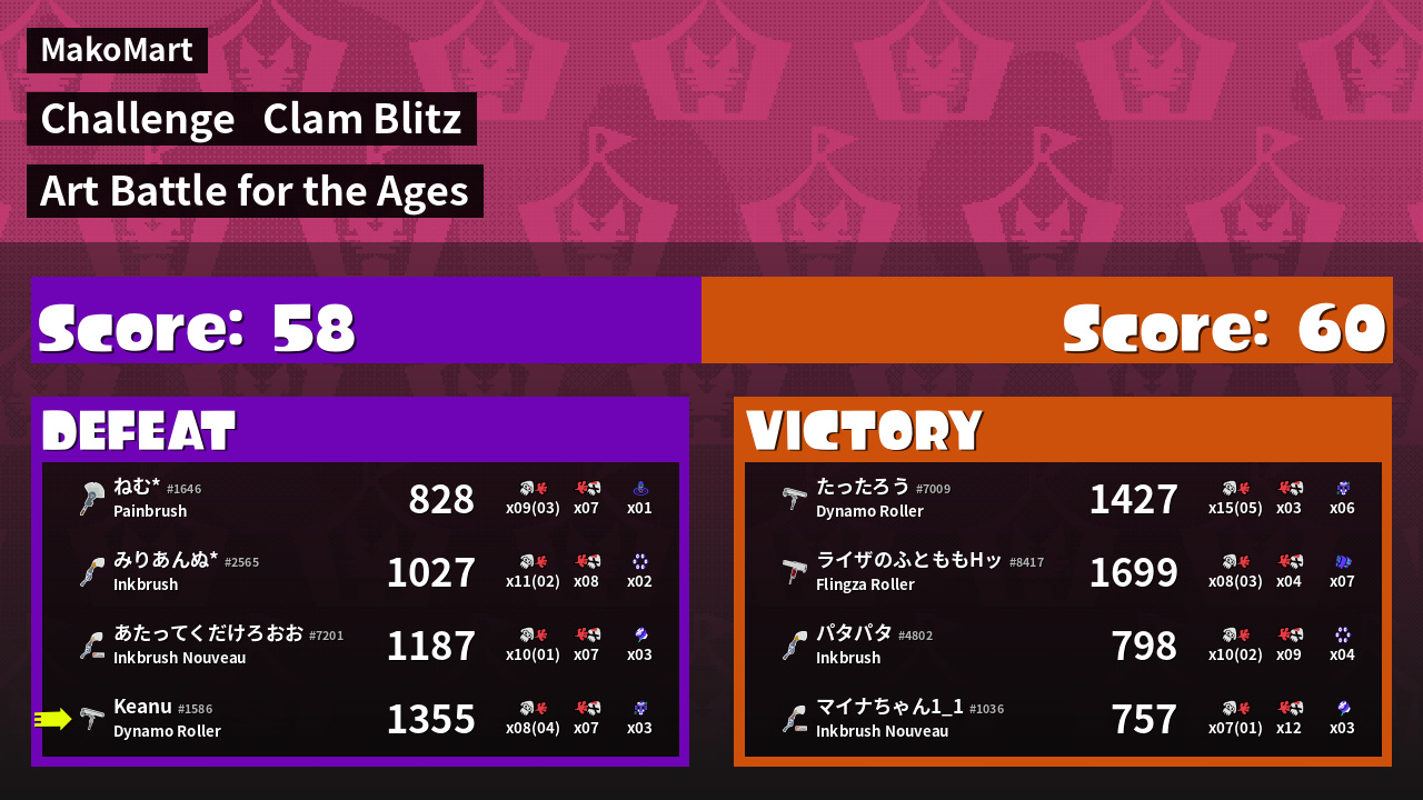 | Medals | #1 Turf Inker #1 Splat Assister #1 Clam Stopper | ||