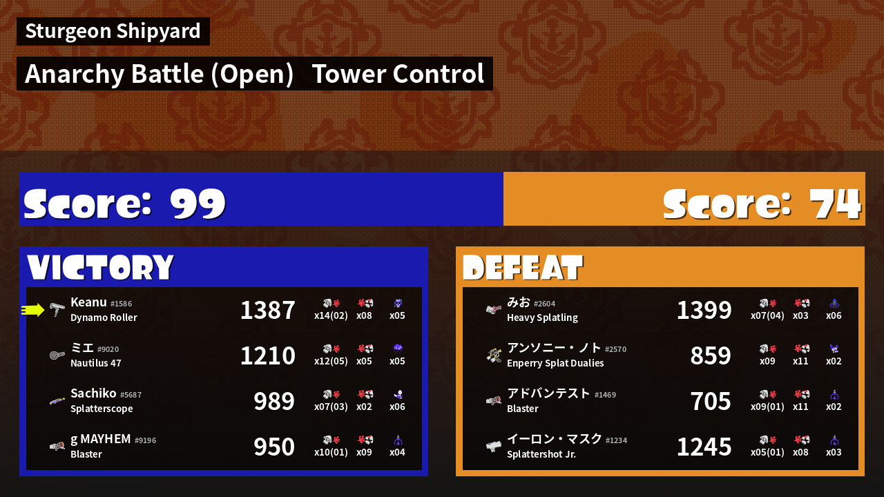 | Mode | Tower Control - Anarchy Battle (Open) | ||