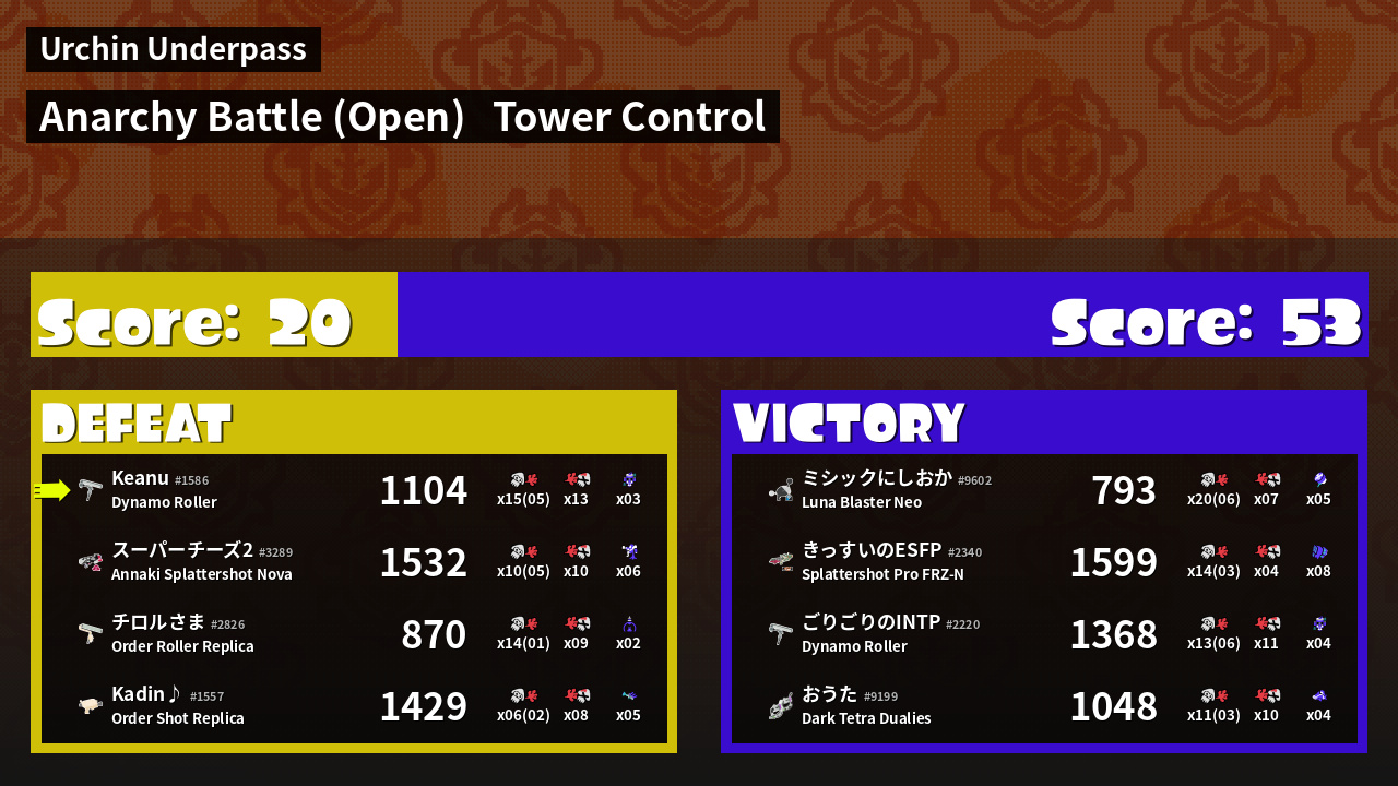 | Mode | Tower Control - Anarchy Battle (Open) | ||
