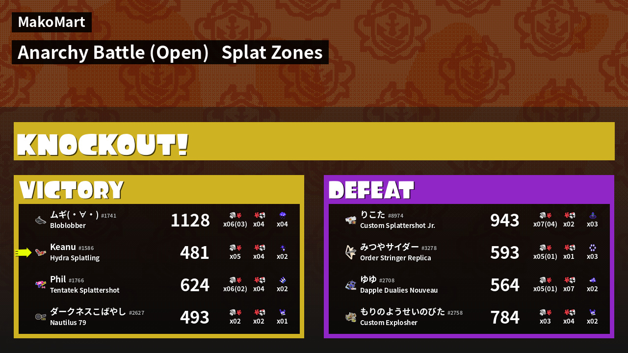 | Mode | Splat Zones - Anarchy Battle (Open) | ||