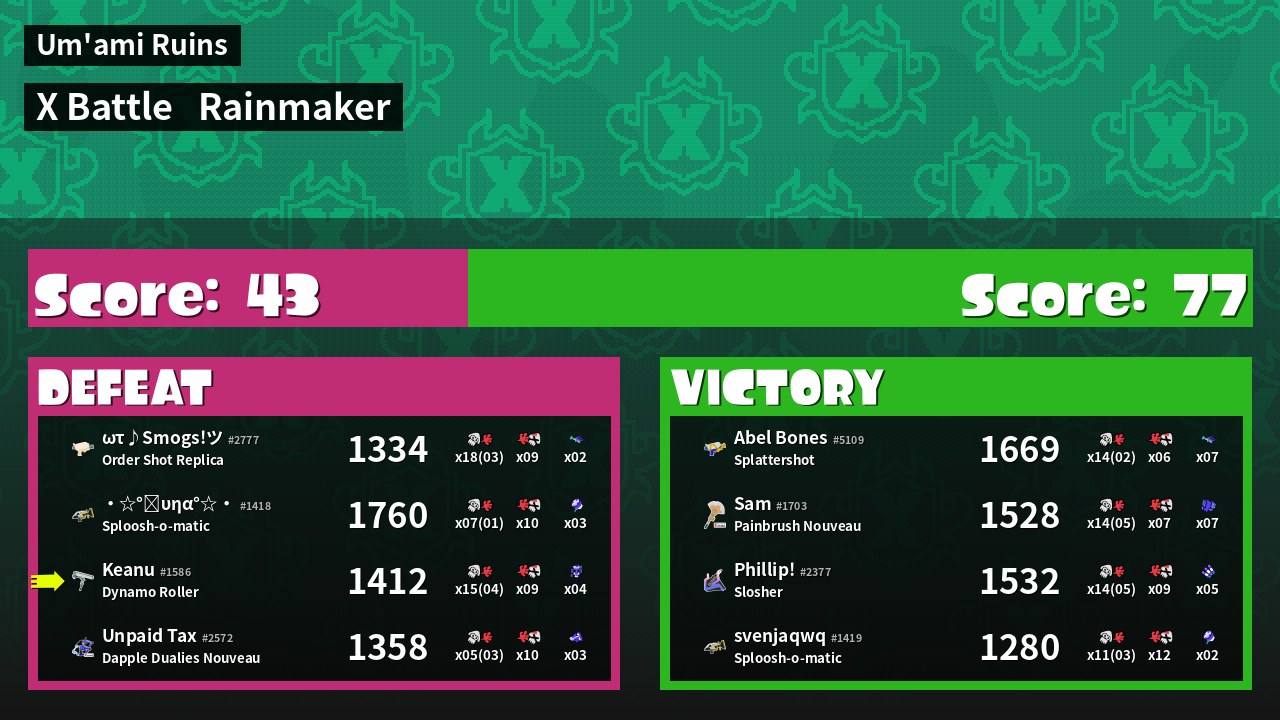 | Medals | #1 Splat Assister #1 Rainmaker Stopper #1 Ground Traveler | ||