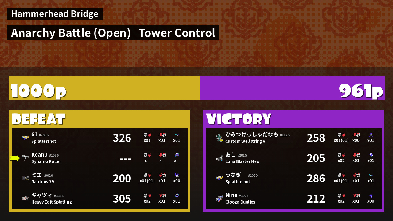 | Mode | Tower Control - Anarchy Battle (Open) | ||