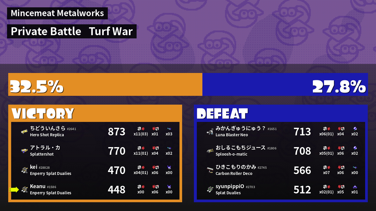 | Weapon | Enperry Splat Dualies ( Curling Bomb / Triple Splashdown) | ||