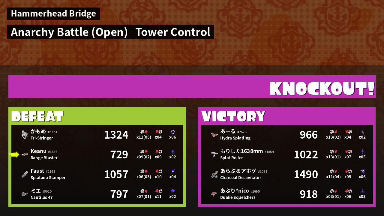 | Mode | Tower Control - Anarchy Battle (Open) | ||