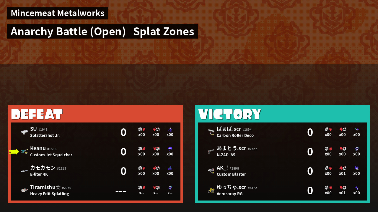 | Mode | Splat Zones - Anarchy Battle (Open) | ||