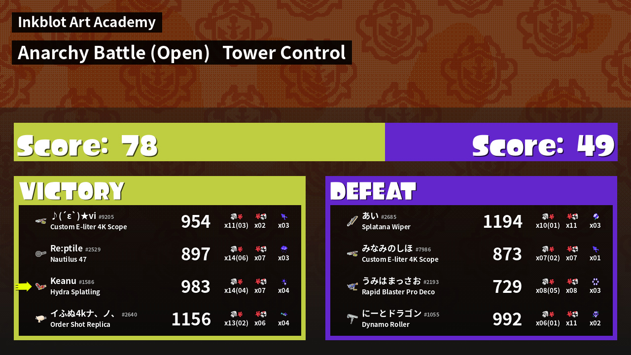 | Mode | Tower Control - Anarchy Battle (Open) | ||