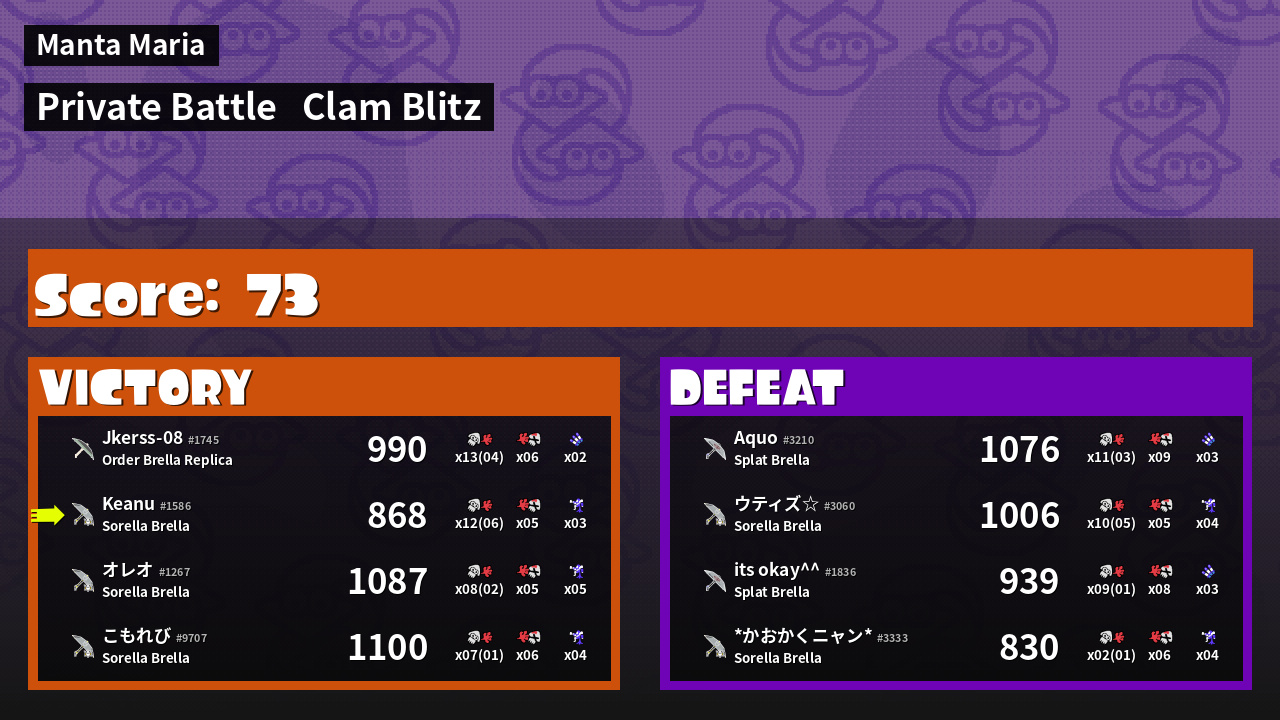 | Medals | #1 Score Booster #1 Splat Assister #1 Clam Stopper | ||