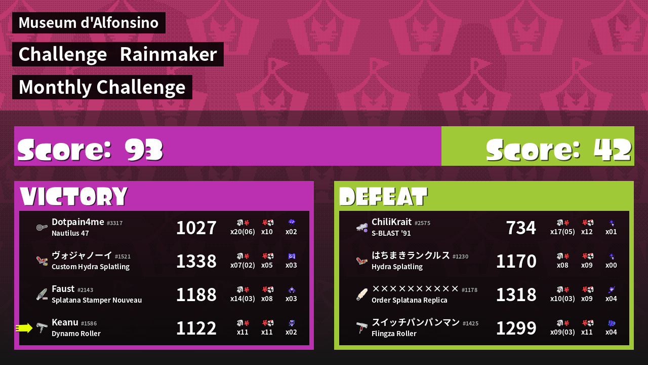 | Weapon | Dynamo Roller ( Sprinkler / Tacticooler) | ||