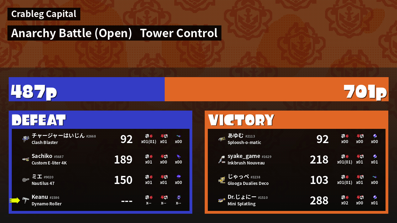| Mode | Tower Control - Anarchy Battle (Open) | ||
