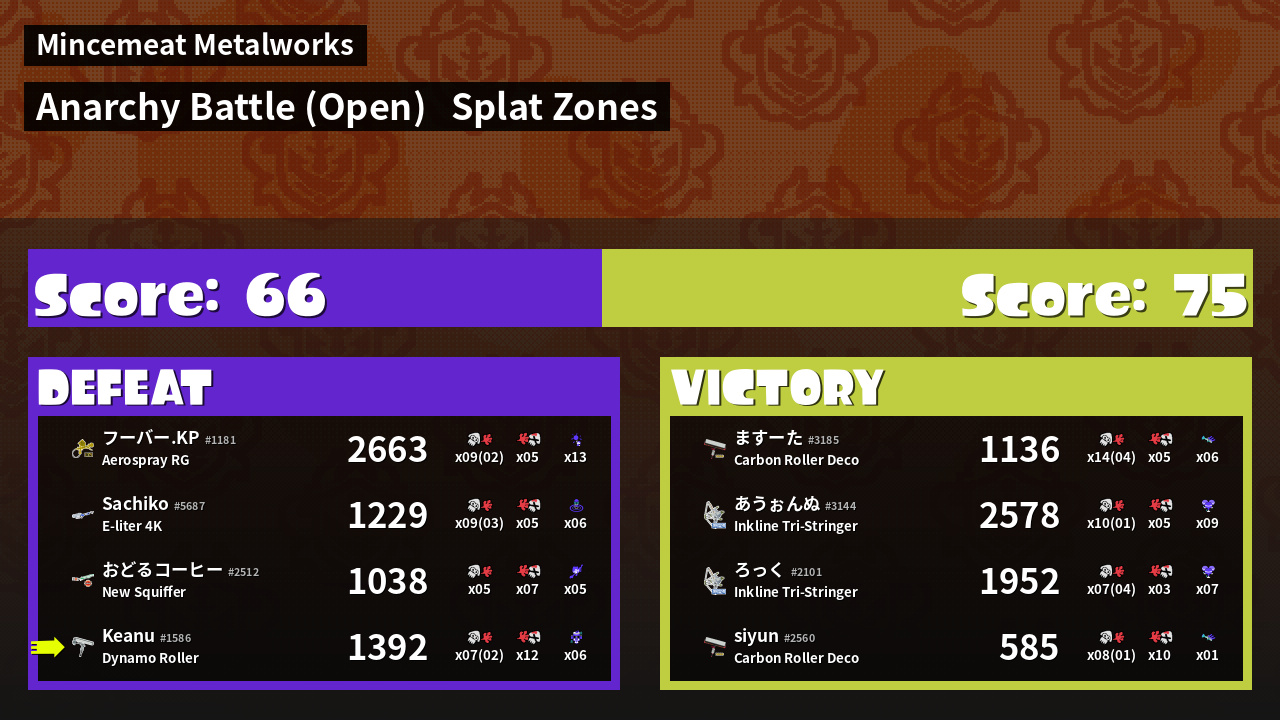 | Mode | Splat Zones - Anarchy Battle (Open) | ||