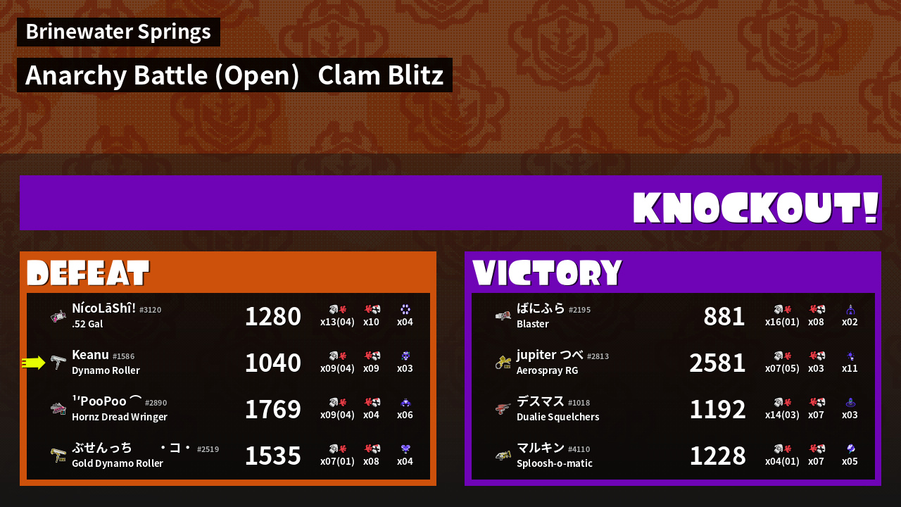 | Mode | Clam Blitz - Anarchy Battle (Open) | ||