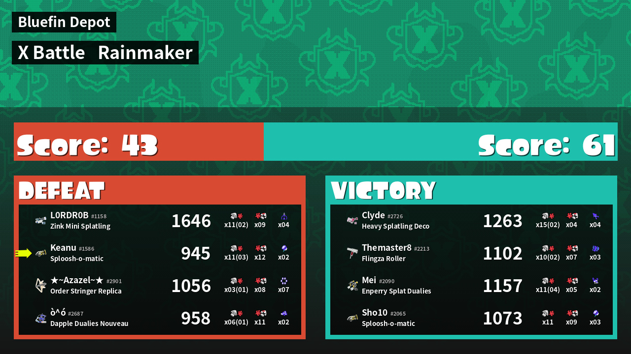 | Medals | #1 Overall Splatter #1 Splat Assister #1 Rainmaker Carrier | ||