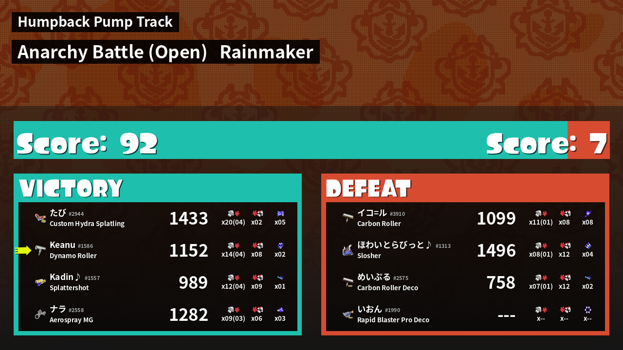 | Mode | Rainmaker - Anarchy Battle (Open) | ||