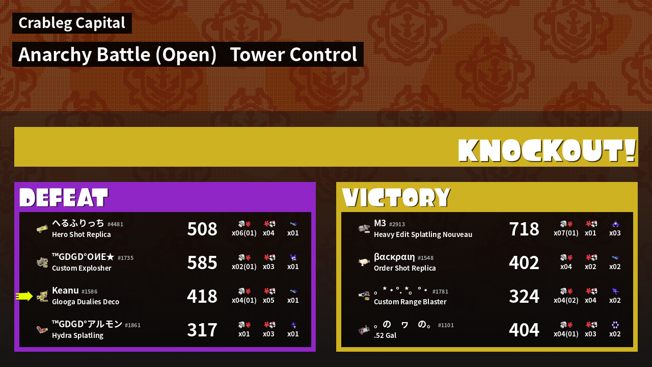 | Mode | Tower Control - Anarchy Battle (Open) | ||