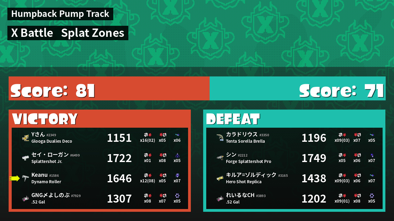 | Mode | Splat Zones - X Battle | ||