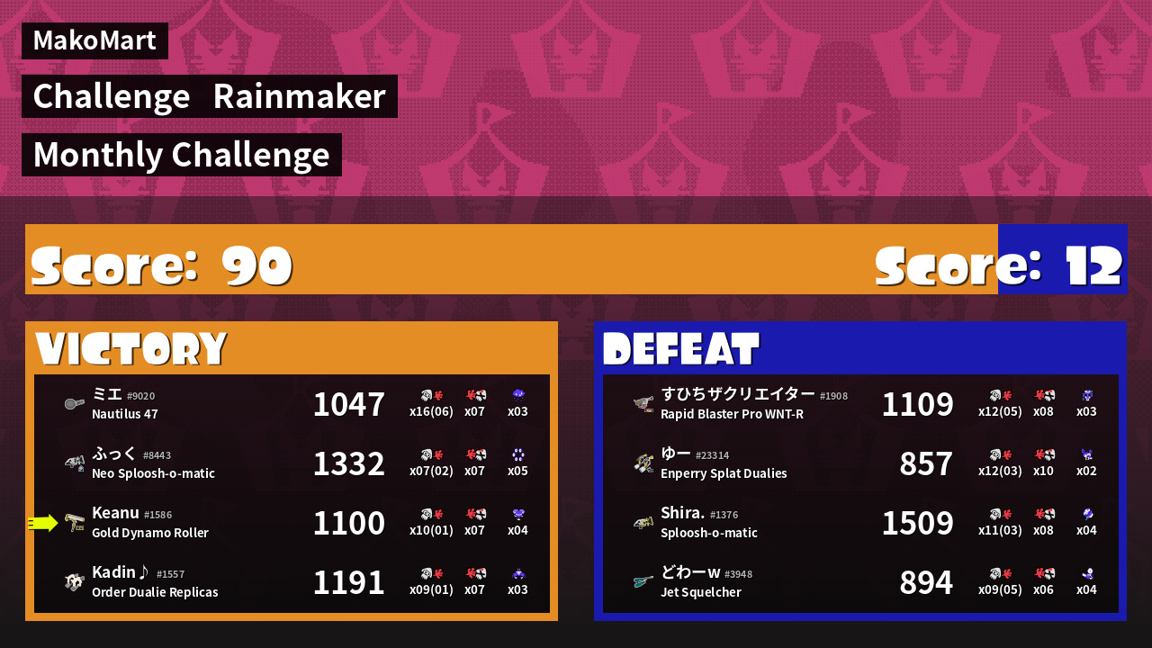 | Weapon | Gold Dynamo Roller ( Splat Bomb / Super Chump) | ||