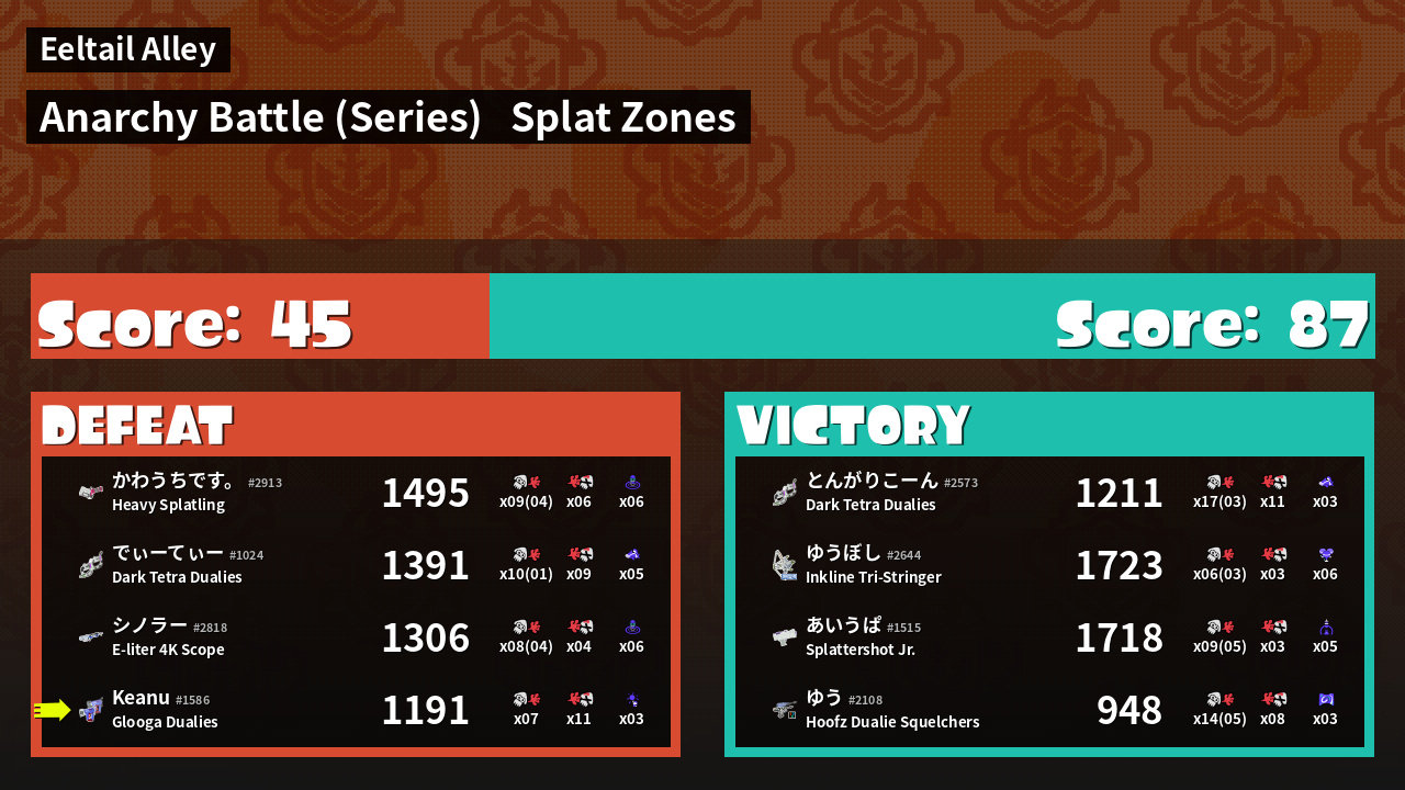 | Mode | Splat Zones - Anarchy Battle (Series) | ||