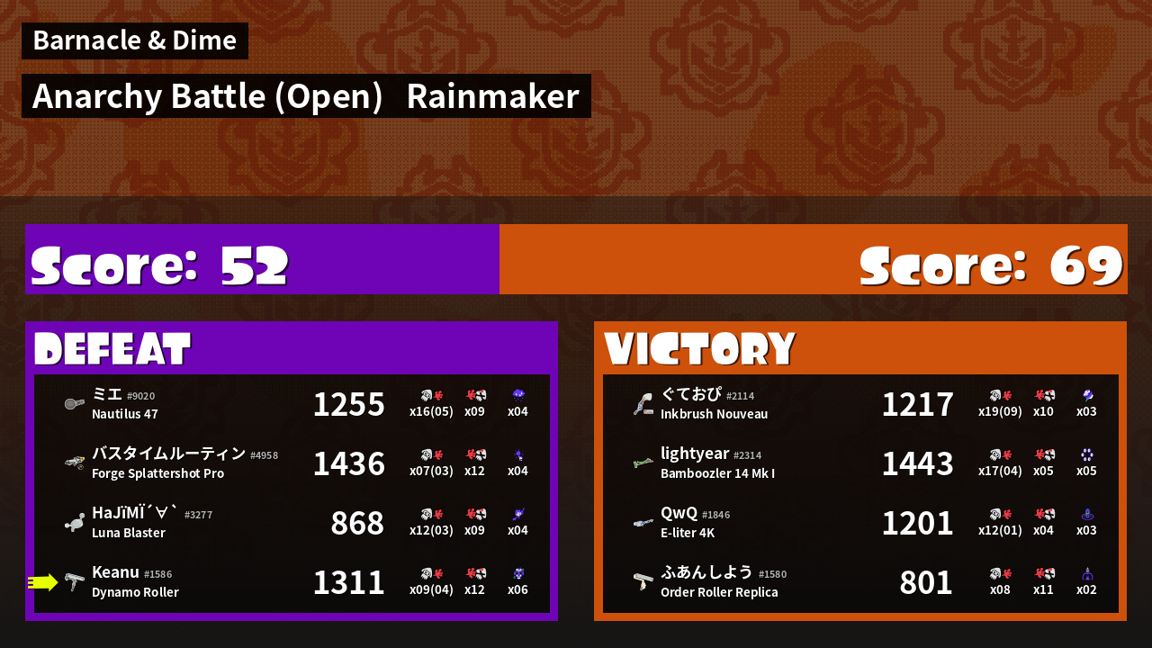 | Mode | Rainmaker - Anarchy Battle (Open) | ||