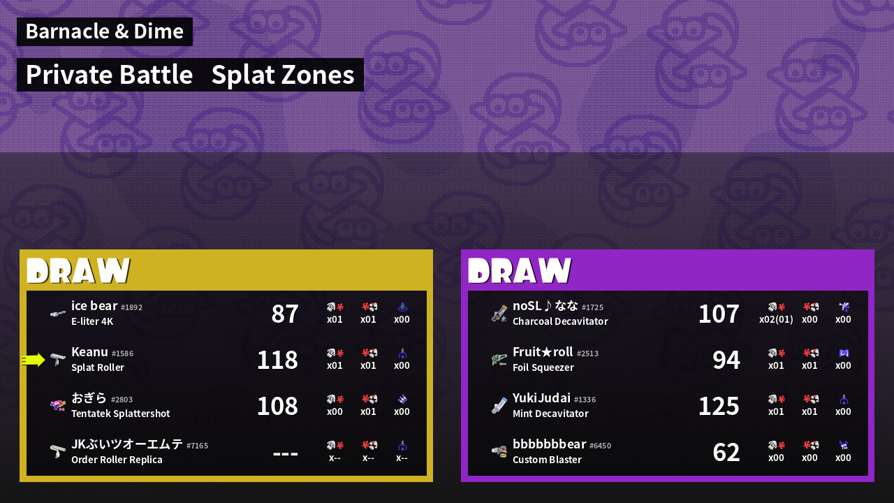 | Weapon | Splat Roller ( Curling Bomb / Big Bubbler) | ||