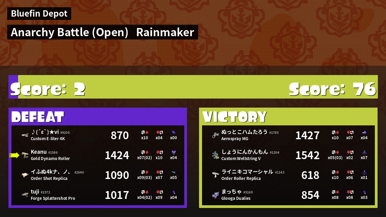 | Mode | Rainmaker - Anarchy Battle (Open) | ||
