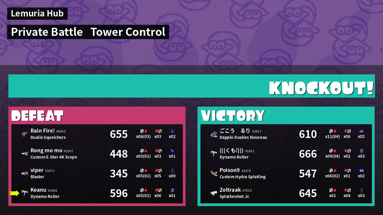 | Medals | #1 Enemy Splatter #2 Overall Splatter #2 Turf Inker | ||