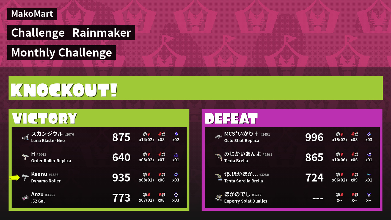 | Weapon | Dynamo Roller ( Sprinkler / Tacticooler) | ||