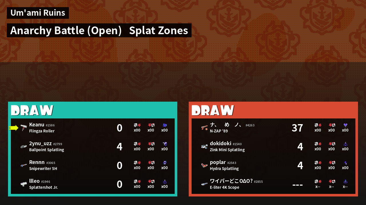 | Mode | Splat Zones - Anarchy Battle (Open) | ||