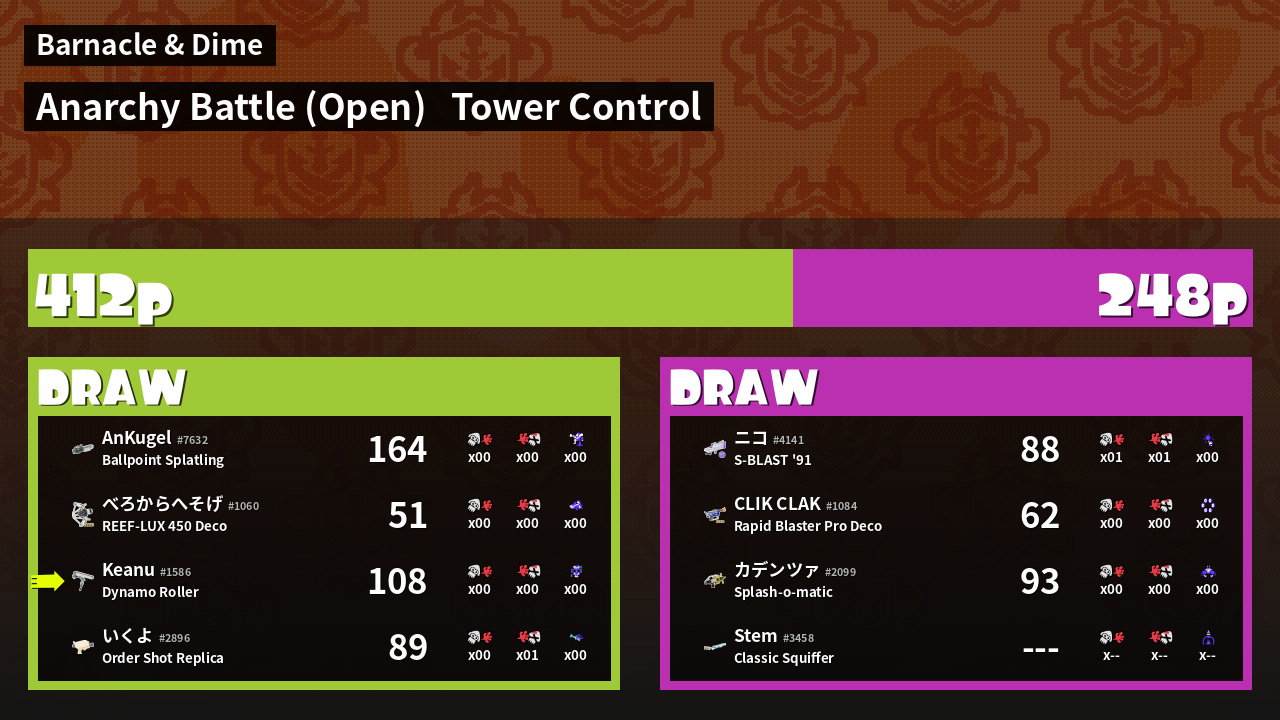 | Mode | Tower Control - Anarchy Battle (Open) | ||