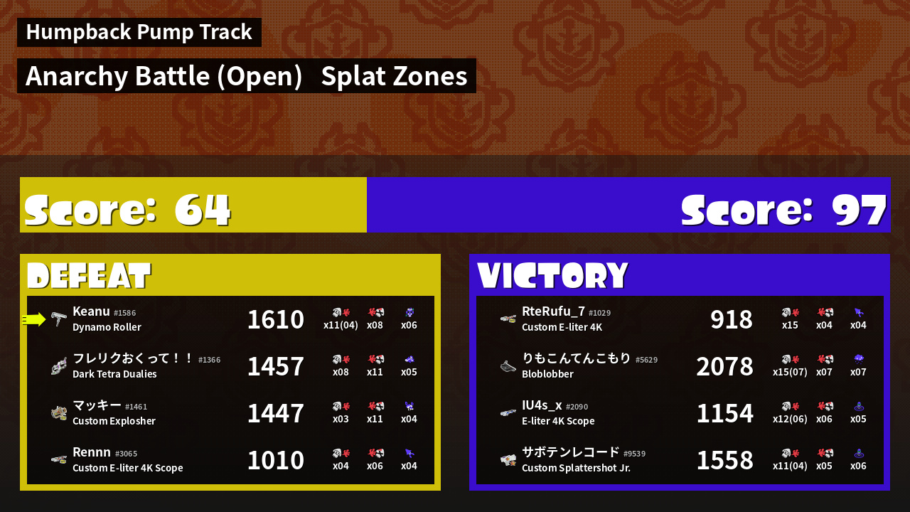 | Mode | Splat Zones - Anarchy Battle (Open) | ||