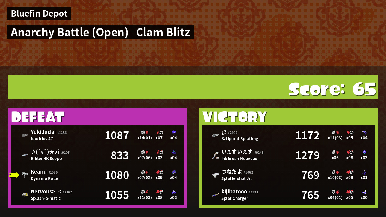 | Mode | Clam Blitz - Anarchy Battle (Open) | ||