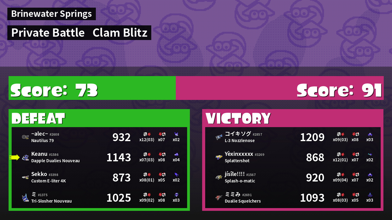 | Mode | Clam Blitz - Private Battle | ||