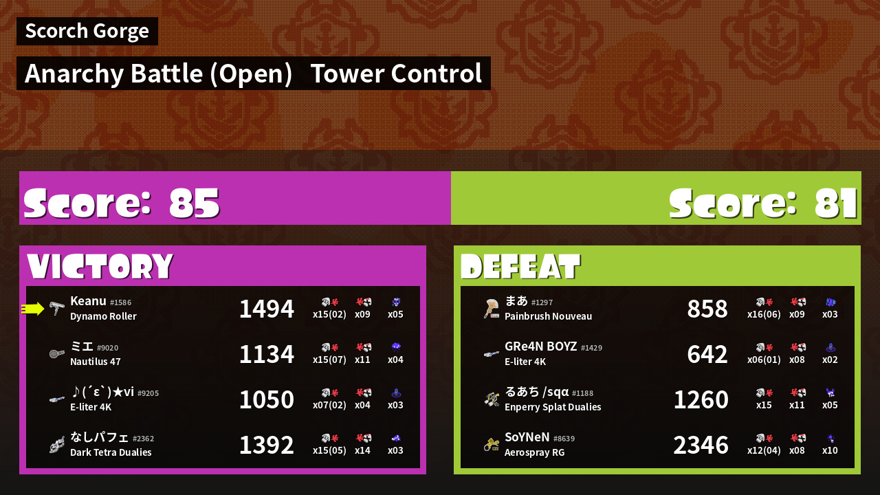 | Mode | Tower Control - Anarchy Battle (Open) | ||