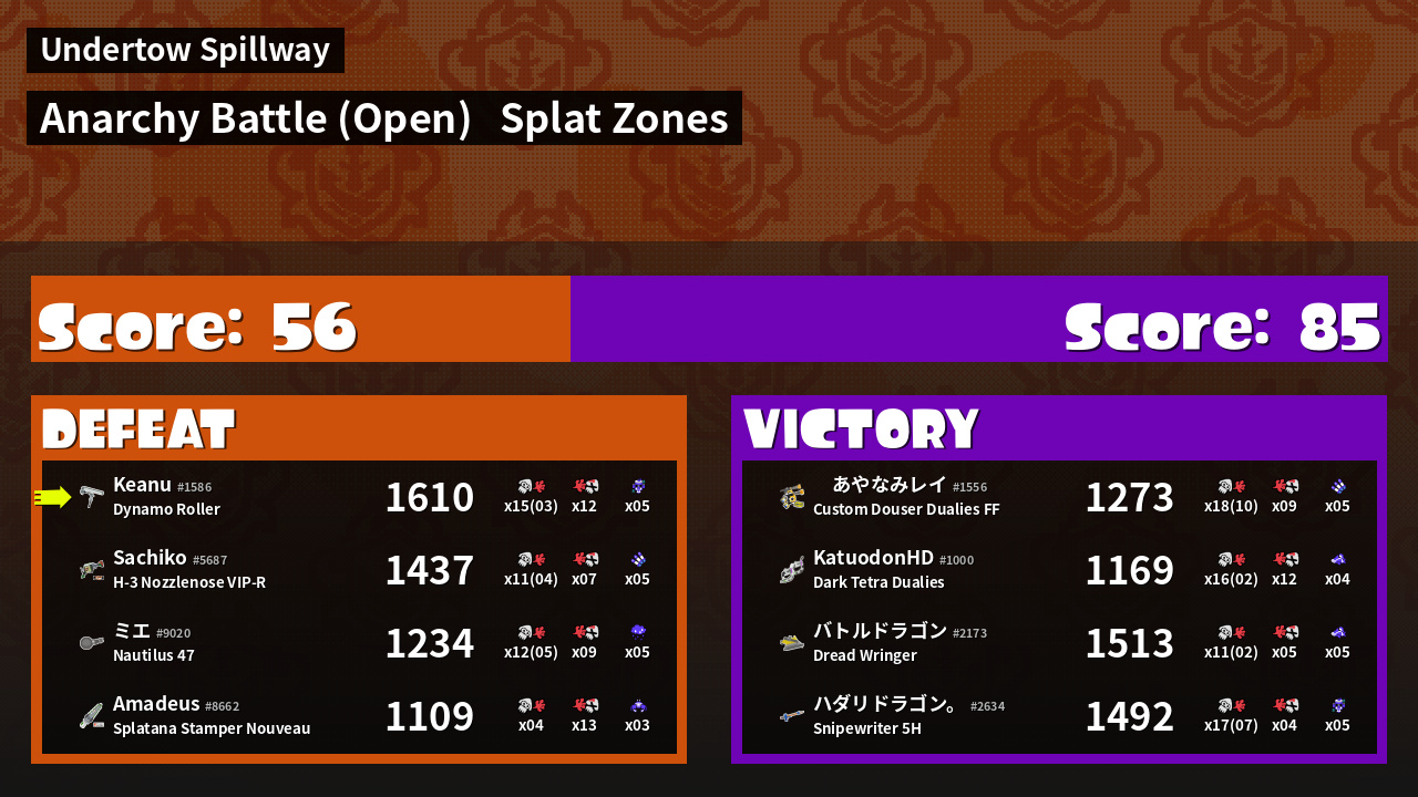 | Mode | Splat Zones - Anarchy Battle (Open) | ||