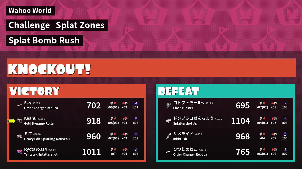 | Challenge | Splat Bomb Rush Let the Splat Bombs fly in this free-for-all! | ||