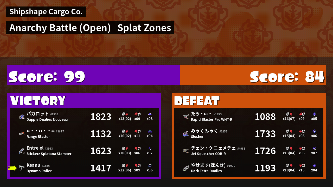 | Mode | Splat Zones - Anarchy Battle (Open) | ||