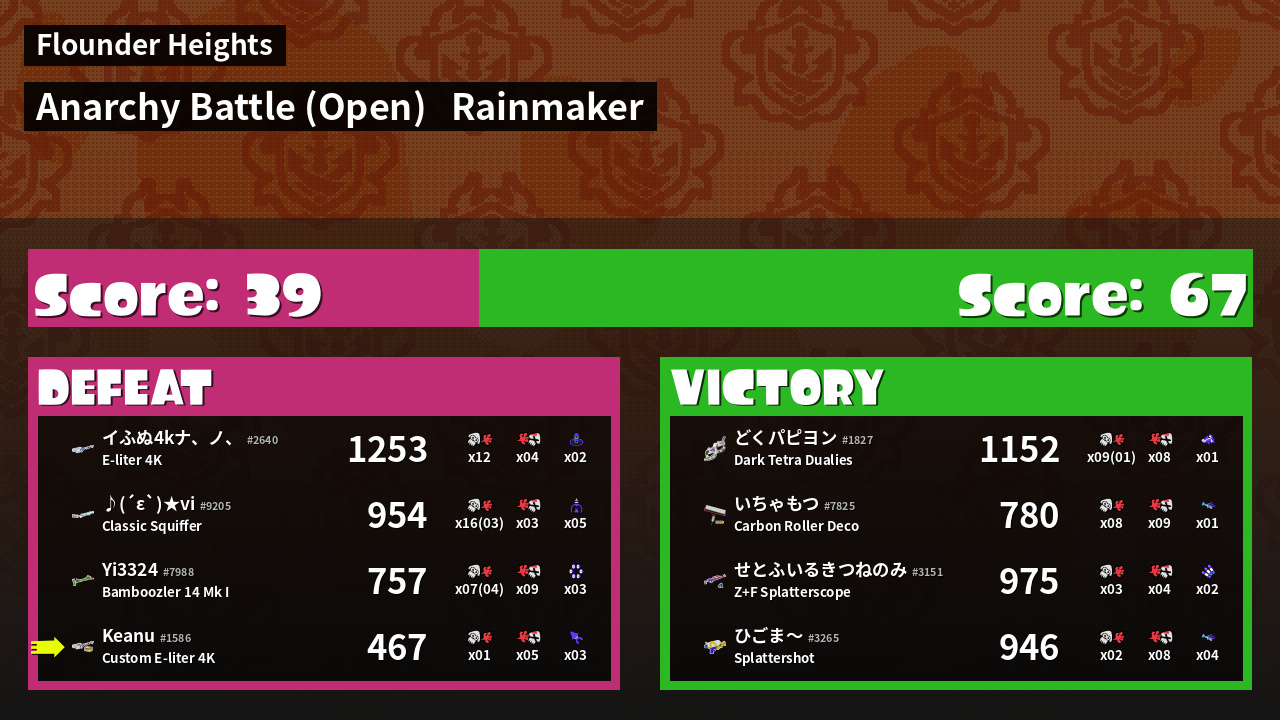 | Mode | Rainmaker - Anarchy Battle (Open) | ||