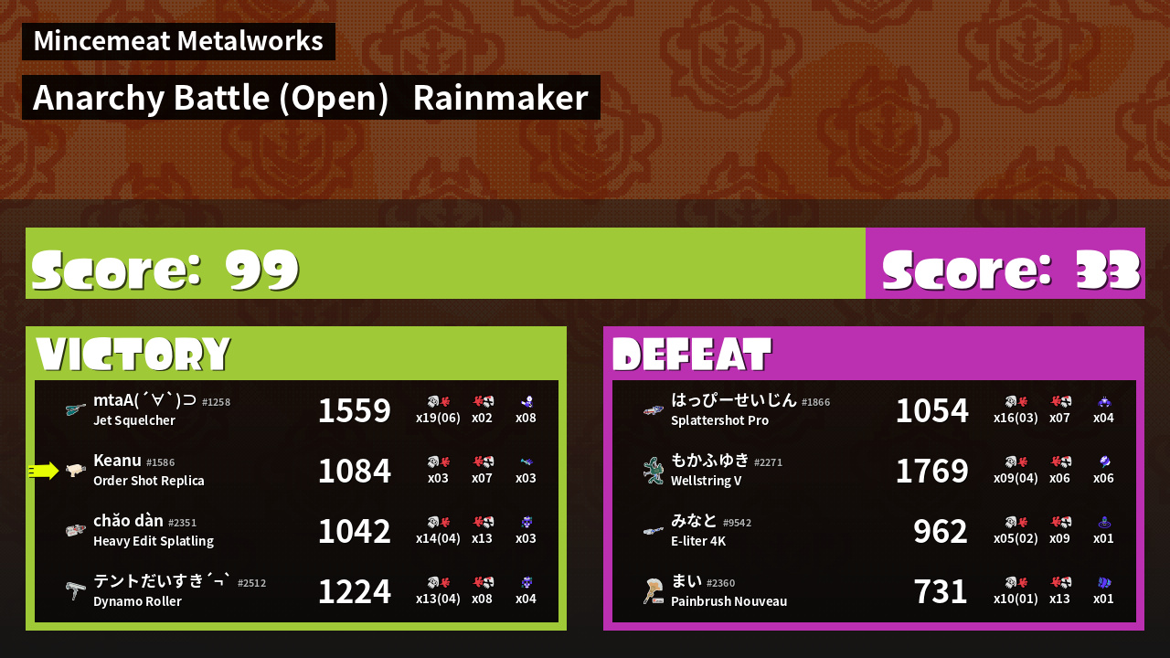 | Mode | Rainmaker - Anarchy Battle (Open) | ||
