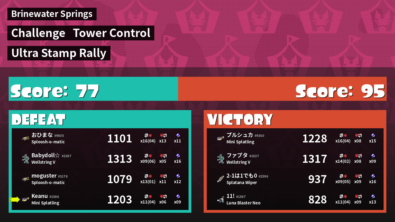 | Medals | #1 Tower Stopper #1 Damage Taker #1 Ink Consumer | ||