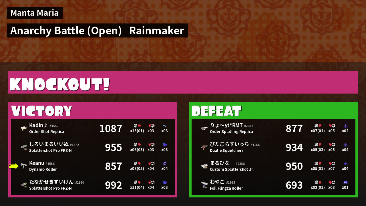 | Mode | Rainmaker - Anarchy Battle (Open) | ||