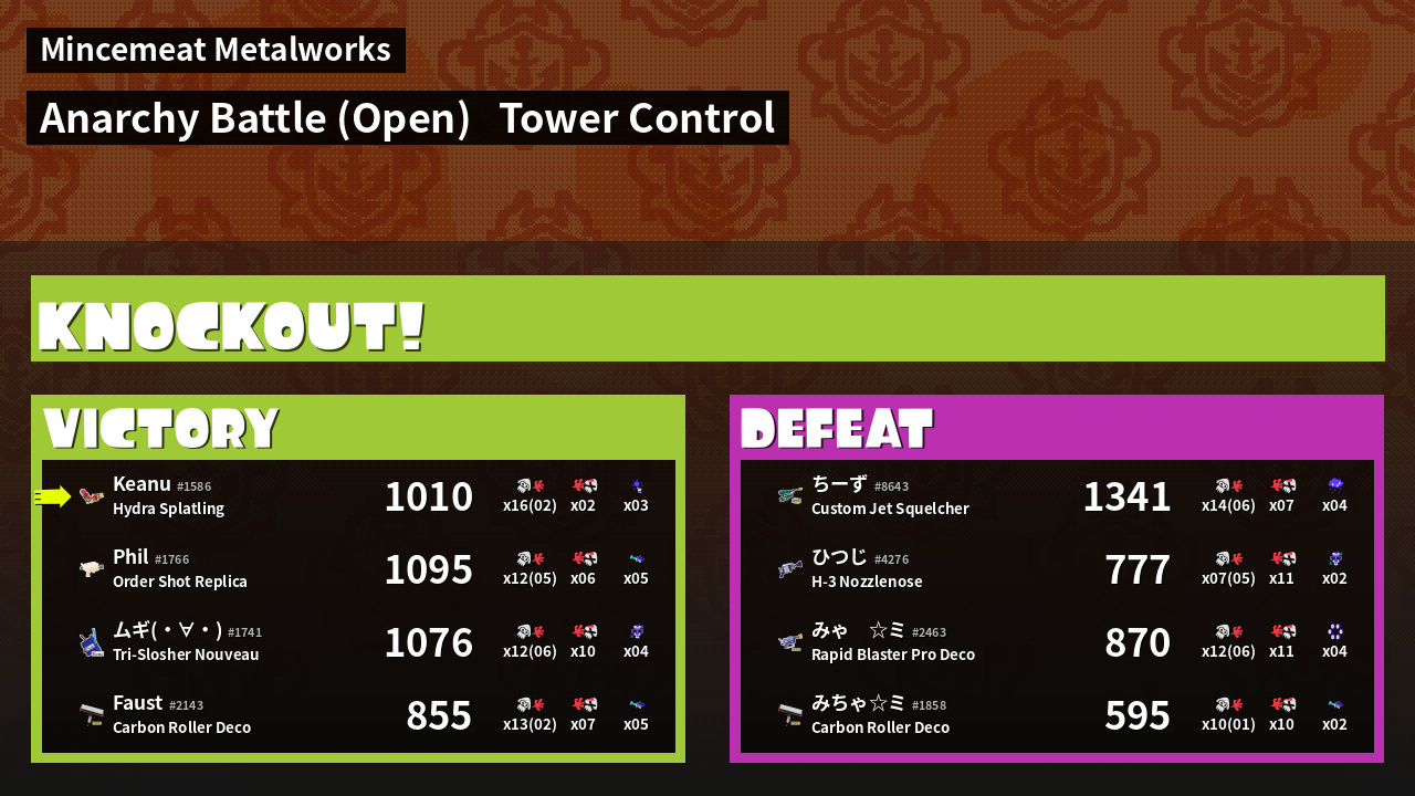 | Mode | Tower Control - Anarchy Battle (Open) | ||