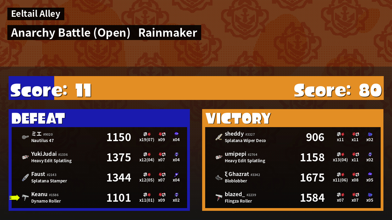 | Mode | Rainmaker - Anarchy Battle (Open) | ||