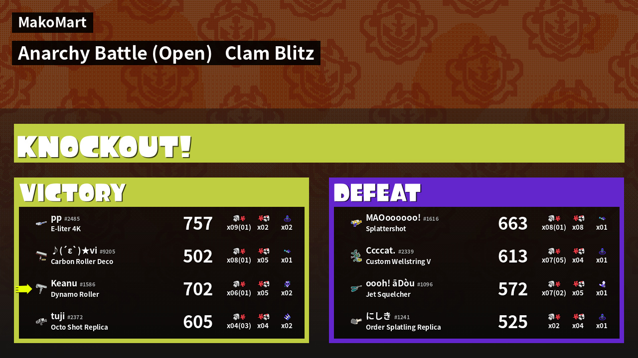 | Mode | Clam Blitz - Anarchy Battle (Open) | ||