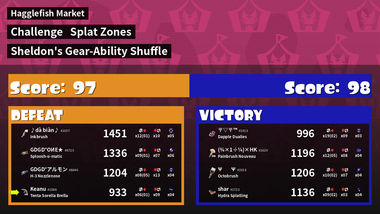 | Weapon | Tenta Sorella Brella ( Ink Mine / Trizooka) | ||