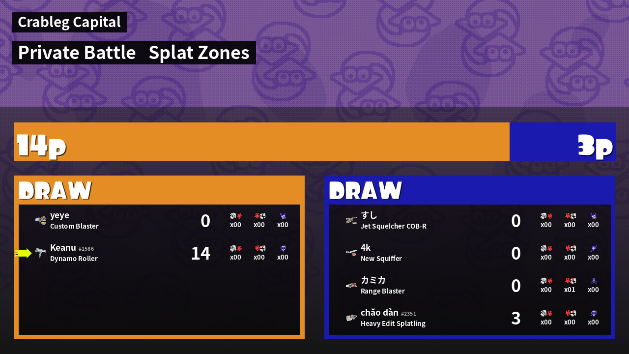 | Mode | Splat Zones - Private Battle | ||