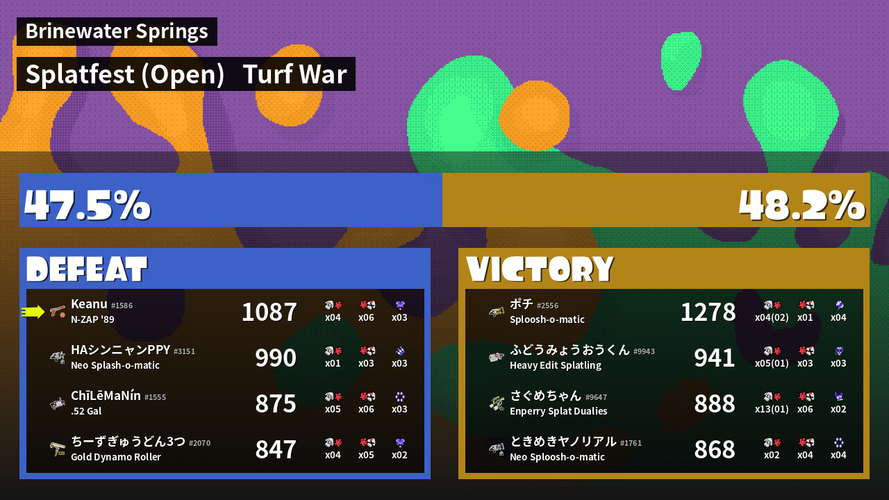 | Medals | #1 Turf Inker #1 Enemy-Base Inker #1 Super Chump User | ||