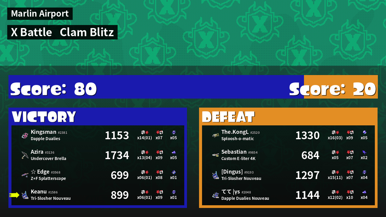 | Mode | Clam Blitz - X Battle | ||