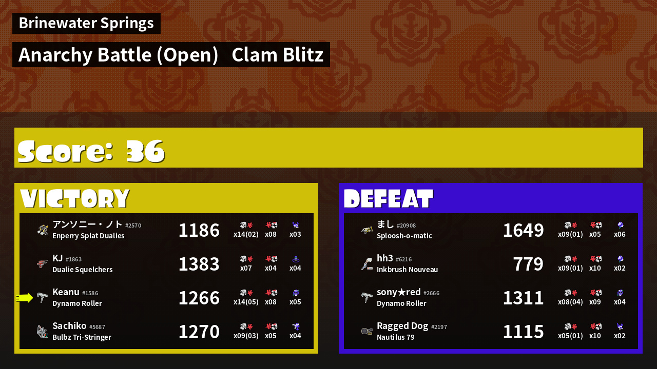 | Mode | Clam Blitz - Anarchy Battle (Open) | ||