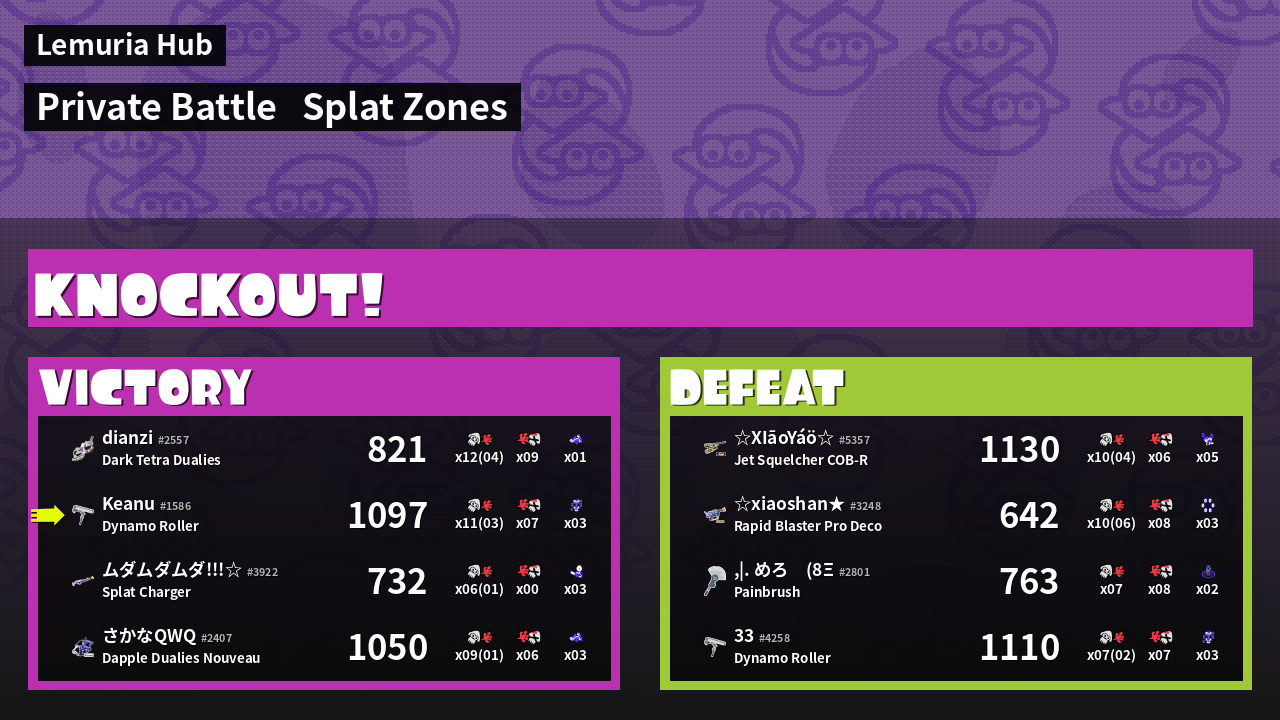 | Mode | Splat Zones - Private Battle | ||